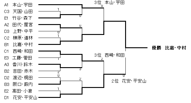 優勝 鳥山・北野/美原 2位 長江・小森/松原 3位 丸山・辻林/美原,小西・金谷/美原